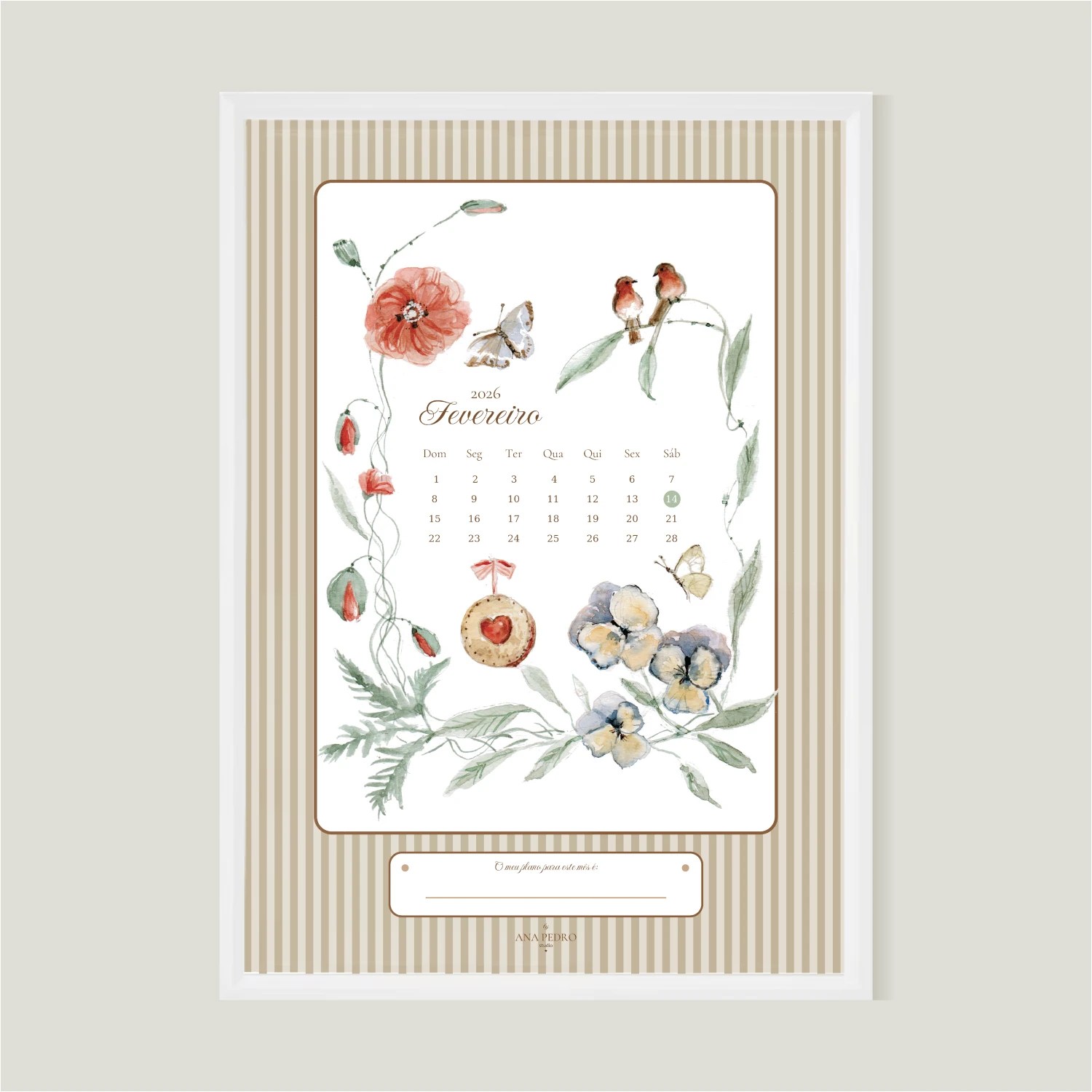 A sweet CALENDAR, featuring 12 delightful illustrations that will make us dream! This calendar comes with a simple white frame, which can be placed on a wall or table. You can easily change the illustrations depending on the month.